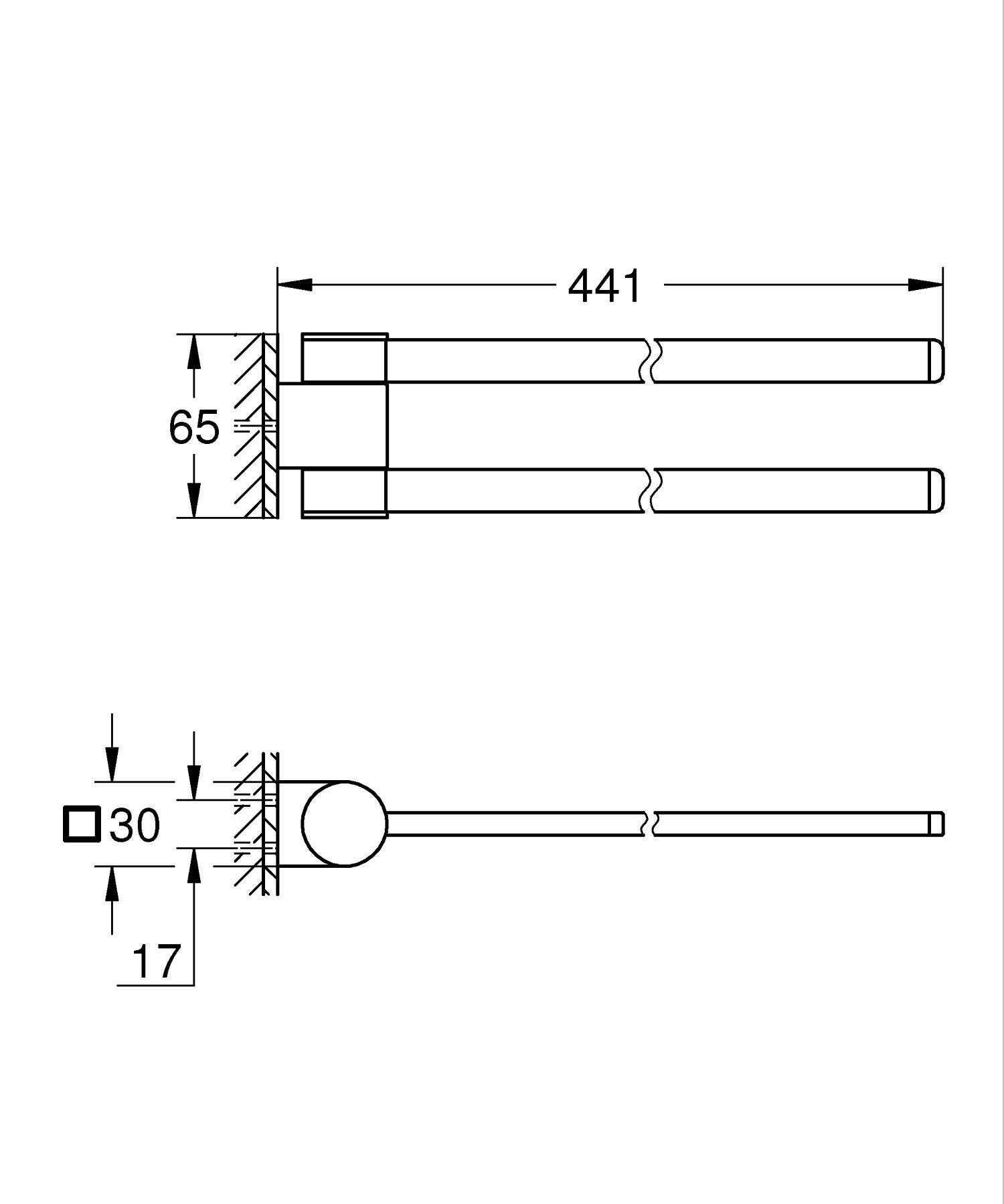 A delightful finishing touch to any bathroom – the GROHE Selection towel holder with two pivotable arms in eye-catching phantom black ! - material: metal, depth 441 mm (functional depth 400 mm), two arms, concealed fastening, professional edition