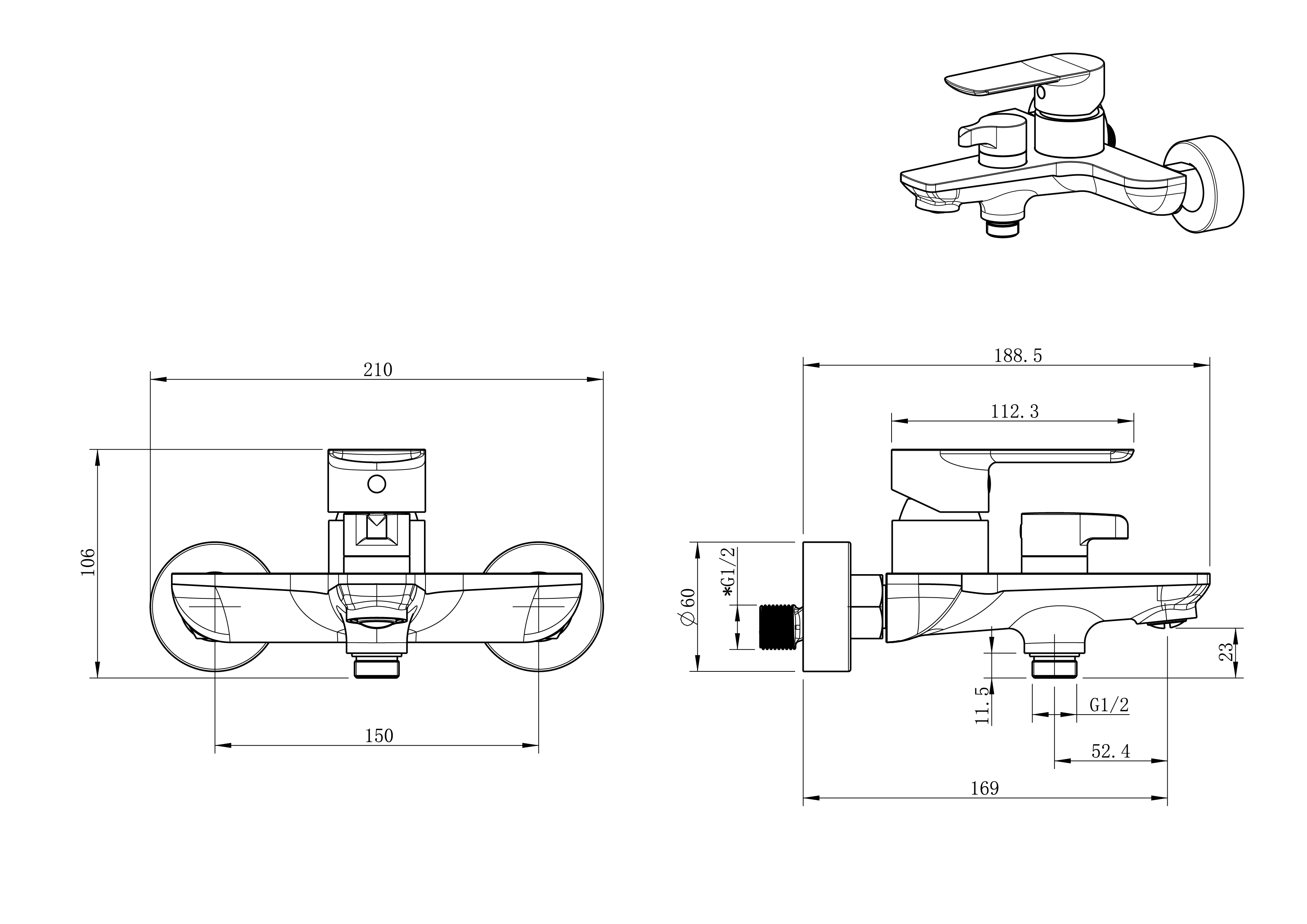 Seine single lever exposed bath mixer with diverter. Wall mounted, 2 hole. Manufactured with dezincification resistant (DZR) brass. Matt black items are coated using an electrophoresis coating process resulting in a thickness of between 20 - 25µm. 15mm connection ends. Fitted with Neoperl perlator. Hand shower & hose sold separately. 2 year warranty on black coating. Jaswic Approved Care & Maintenace - Ensure your product does not come into contact with any lubricants during installation. Chrome plated, matte black and any colour finshes should be wiped with warm soapy water and a soft cloth or sponge. Rinse, then dry and buff with a dry soft cloth. Under no circumstances must any detergents containing hydrochloric acids or abrasives including cream cleansers be used. Do not use abrasive cleaning materials such as scourers. Should your product have an aerator at the water outlet, it should be checked and cleaned regularly.