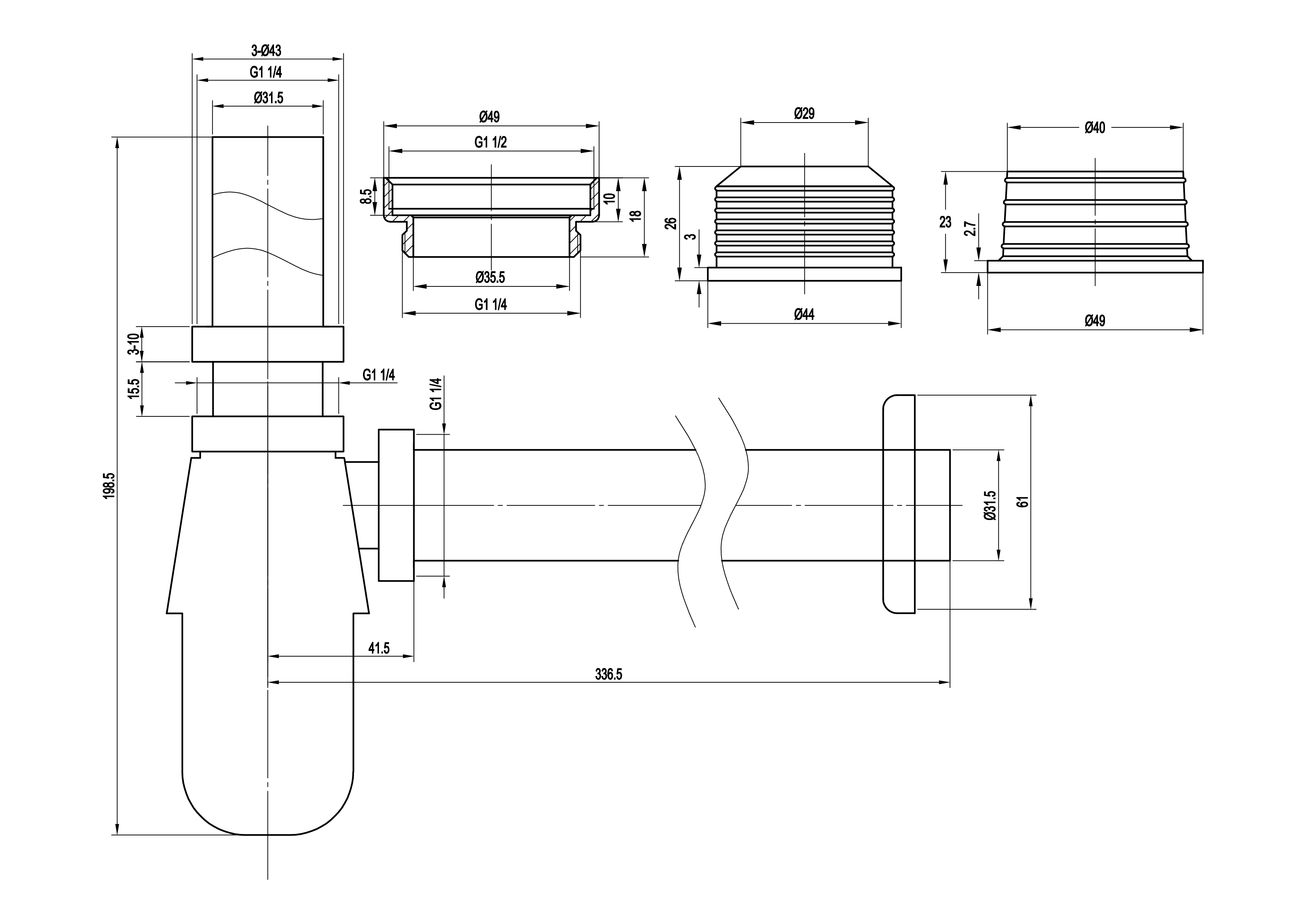 With adjustable telescopic waste connection pipe. 1 1/4BSP female inlet connection. 1 1/4BSP male iron outlet connection. Brass body. Comes with waste adaptor 1 ¼ to 1 ½ BSP & outlet adaptors 1 ¼ & 1 ½. Maximum flow rate +/- 37.5 l/min for trap alone, the flow rate is +/- 35.5 l/min. Care & Maintenace - Ensure your product does not come into contact with any lubricants during installation. Chrome plated, matte black and any colour finshes should be wiped with warm soapy water and a soft cloth or sponge. Rinse, then dry and buff with a dry soft cloth. Under no circumstances must any detergents containing hydrochloric acids or abrasives including cream cleansers be used. Do not use abrasive cleaning materials such as scourers. Should your product have an aerator at the water outlet, it should be checked and cleaned regularly.