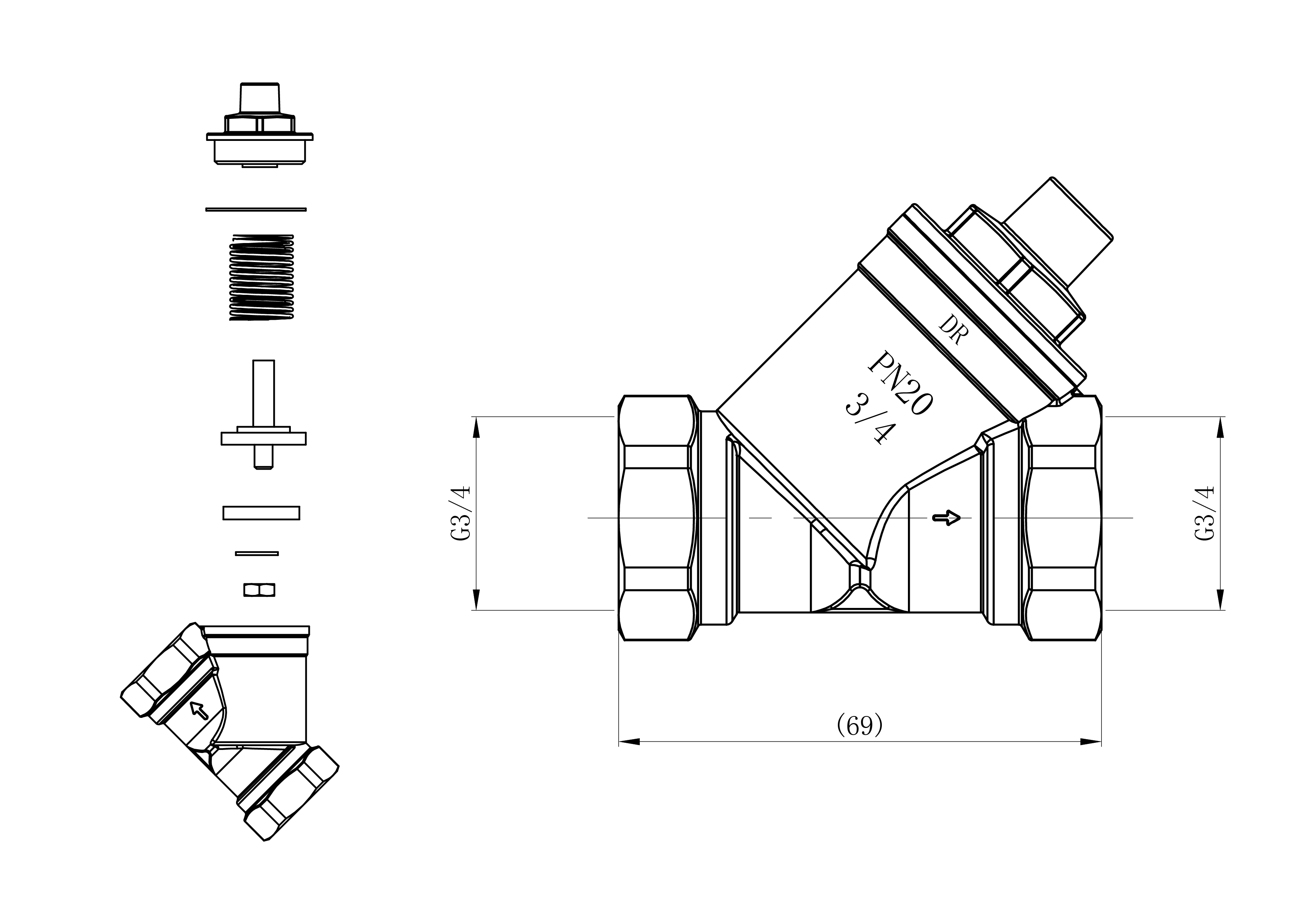Spring type. Hydraulic pressure 2000kPa (non-shock) max. Opening pressure 10kPa. 3/4BSP female iron connection ends. Manufactured from DZR Brass