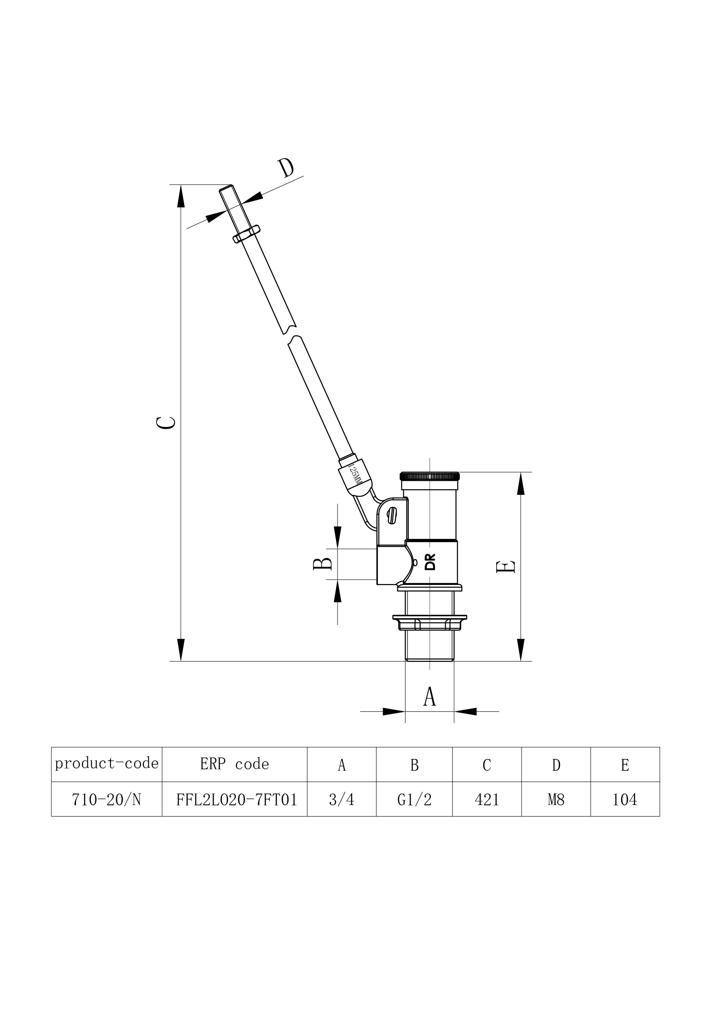 Low pressure. Two piece body MOH pattern. 319mm float arm. 32mm long inlet shank with backnut. Brass piston and 10mm diameter stainless steel seat. 3/4BSP male iron connection end.