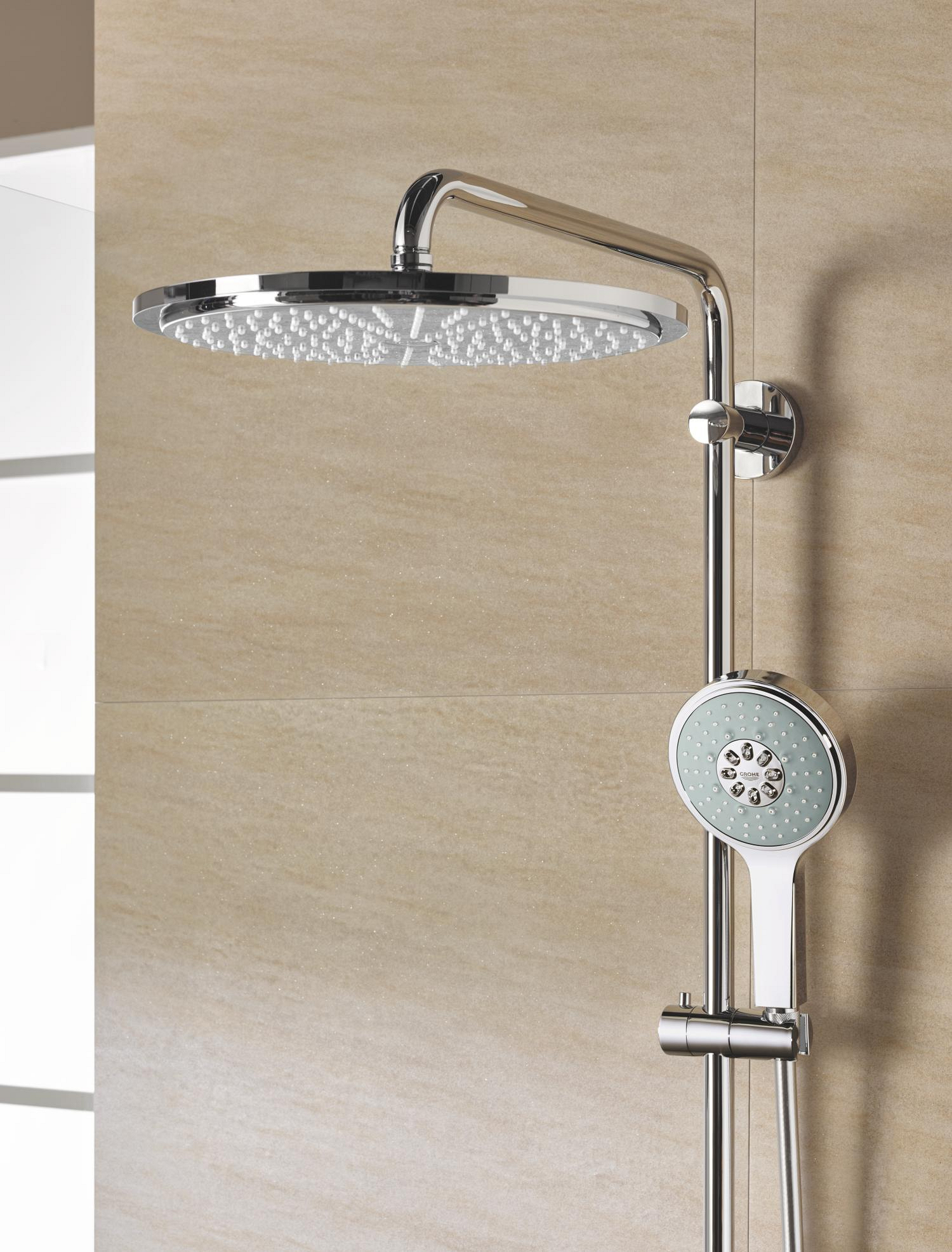 The GROHE Rainshower Cosmopolitan 310 head shower offers luxury, style and enjoyment! - Rain spray pattern, Ø 310 mm, material: metal, ball joint with turning angle 20° ± 20°, connection thread 1/2", GROHE DreamSpray perfect spray pattern, GROHE Long-Life finish, SpeedClean anti-limescale system