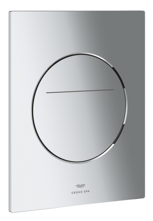 The GROHE Arena Aqua Tiles flush plate in glossy chrome – combines elegance with easy touch control - for dual flush actuation, for pneumatic drop valve AV1, for vertical installation, 160 x 201 mm, material: ABS, GROHE Long-Life finish, GROHE Water Saving - Less water, perfect flow, for combination with Rapid SL and Uniset with GD 2 cistern, slim cistern and 80 mm cistern, 6V lithium battery, type CR-P2, battery lifetime: 4 years for a 3 person household (approx. 17000 actuations), battery status warning, auto flush, cleaning mode, for mains supply please order transformer 100 686 9990