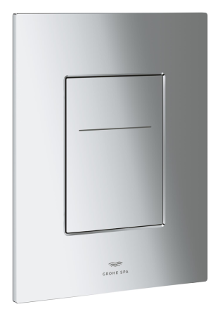 The GROHE Arena Aqua Tiles flush plate in sparkling chrome – elegant style meets fingertip control - for dual flush actuation, for pneumatic drop valve AV1, for vertical installation, 160 x 201 mm, material: ABS, GROHE Long-Life finish, GROHE Water Saving - Less water, perfect flow, for combination with Rapid SL and Uniset with GD 2 cistern, slim cistern and 80 mm cistern, 6V lithium battery, type CR-P2, battery lifetime: 4 years for a 3 person household (approx. 17000 actuations), battery status warning, auto flush, cleaning mode, for mains supply please order transformer 100 686 9990