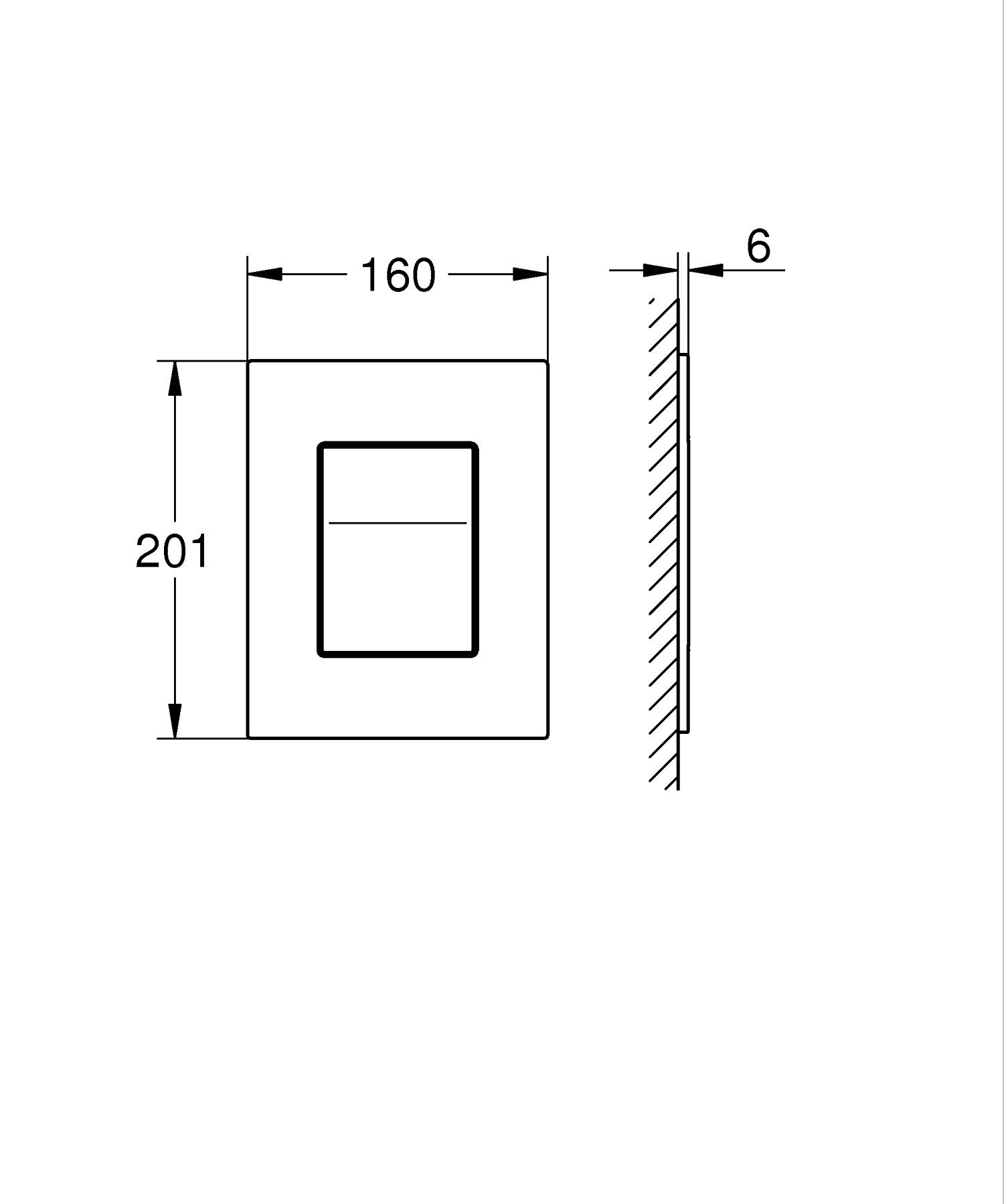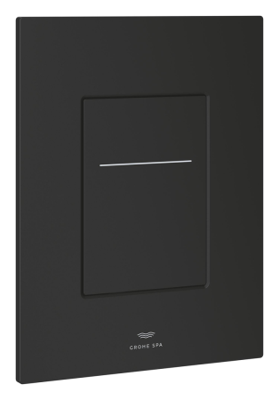 Minimalist design and maximum performance – the GROHE Arina flush plate in phantom black - for dual flush actuation, for pneumatic drop valve AV1, for vertical installation, 160 x 201 mm, material: ABS, GROHE Water Saving - Less water, perfect flow, for combination with Rapid SL and Uniset with GD 2 cistern, slim cistern and 80 mm cistern, 6V lithium battery, type CR-P2, battery lifetime: 4 years for a 3 person household (approx. 17000 actuations), battery status warning, auto flush, cleaning mode, for mains supply please order transformer 100 686 9990